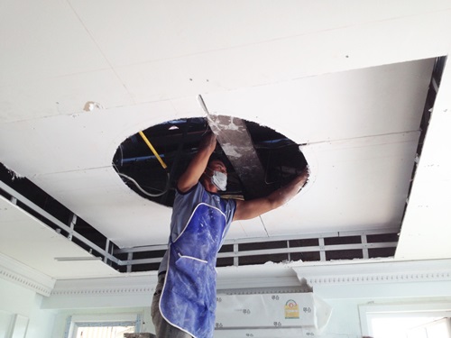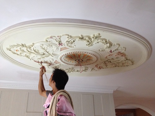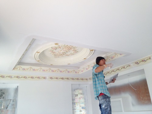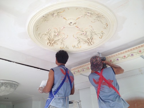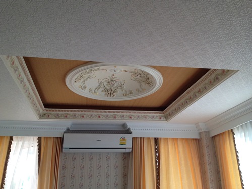 คุณลูกค้าติดตั้งบัวโพลี่แล้ว มีการแก้ไข เลขยจัดบัวปูนพลาสเตอร์แทนทำ 3ห้องนอน 1 ห้องรับแขก 1 ห้องโถง 1 ห้องพระ มีเวลา 3 วัน